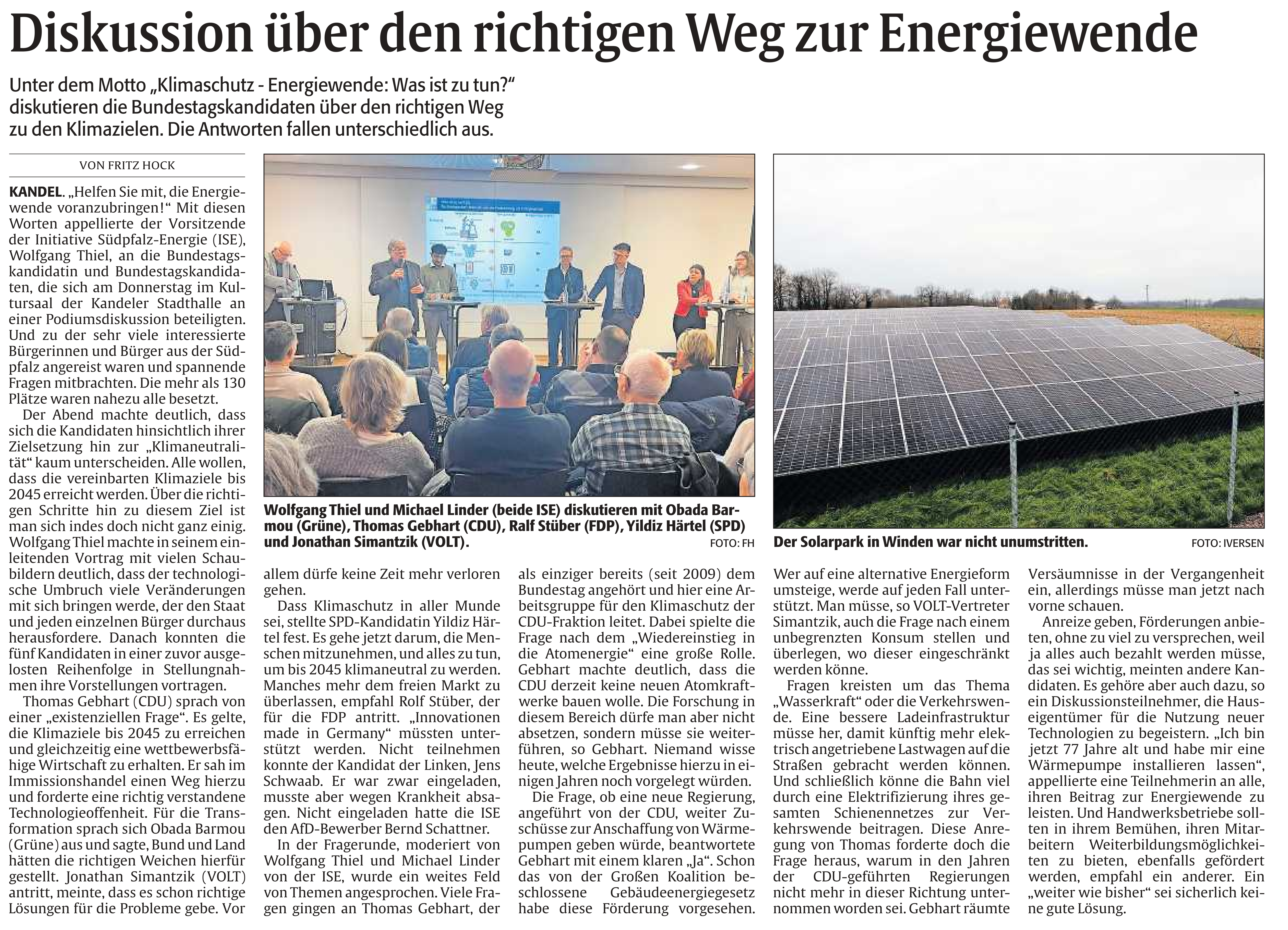 Der Vorsitzende der ISE e.V., Wolfgang Thiel, wurde zu einer Info-Veranstaltung der SPD-Rheinzabern eingeladen, um über Balkonkraftwerke und ihr Umfeld zu berichten (siehe PPT-Präsentation). Fast 60 Teilnehmer sind am 05.06.2025 in die Turn– und Festhalle Rheinzabern gekommen, um sich zu informieren und zu diskutieren.